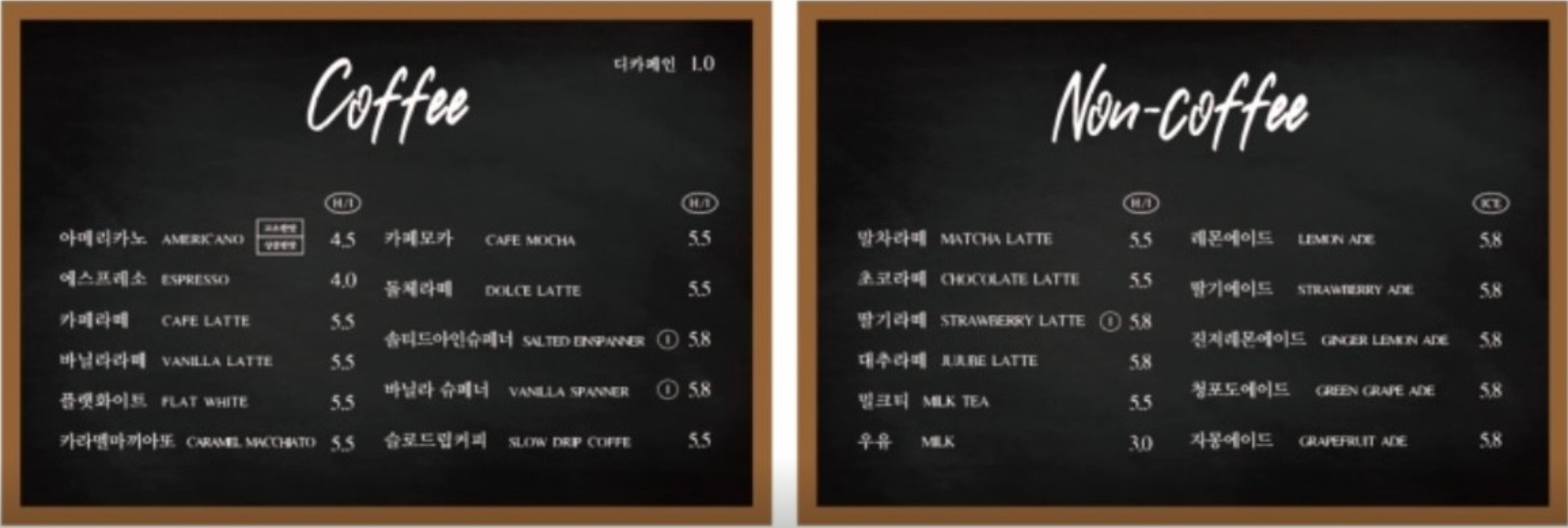 - 말차라떼, 초코라떼 – 5.5